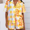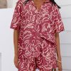 2 Piece Summer Beach Outfits Printed Short Sleeve Tops Lounge Shorts Casual Tracksuit Set