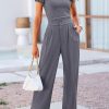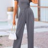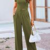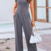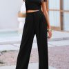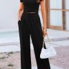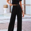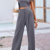 2 Piece Summer Knit Short Sleeve Crop Tops Wide Leg Pants Tracksuit