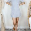 Cotton Candy Ribbed Babydoll Mock Neck Sweater Dress in Grey