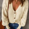 V Neck Long Sleeve Button Down Ribbed Sweatshirts Cardigan quantity