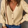 V Neck Long Sleeve Button Down Ribbed Sweatshirts Cardigan