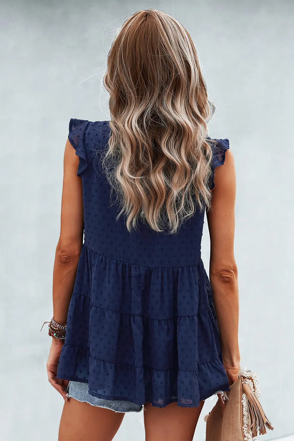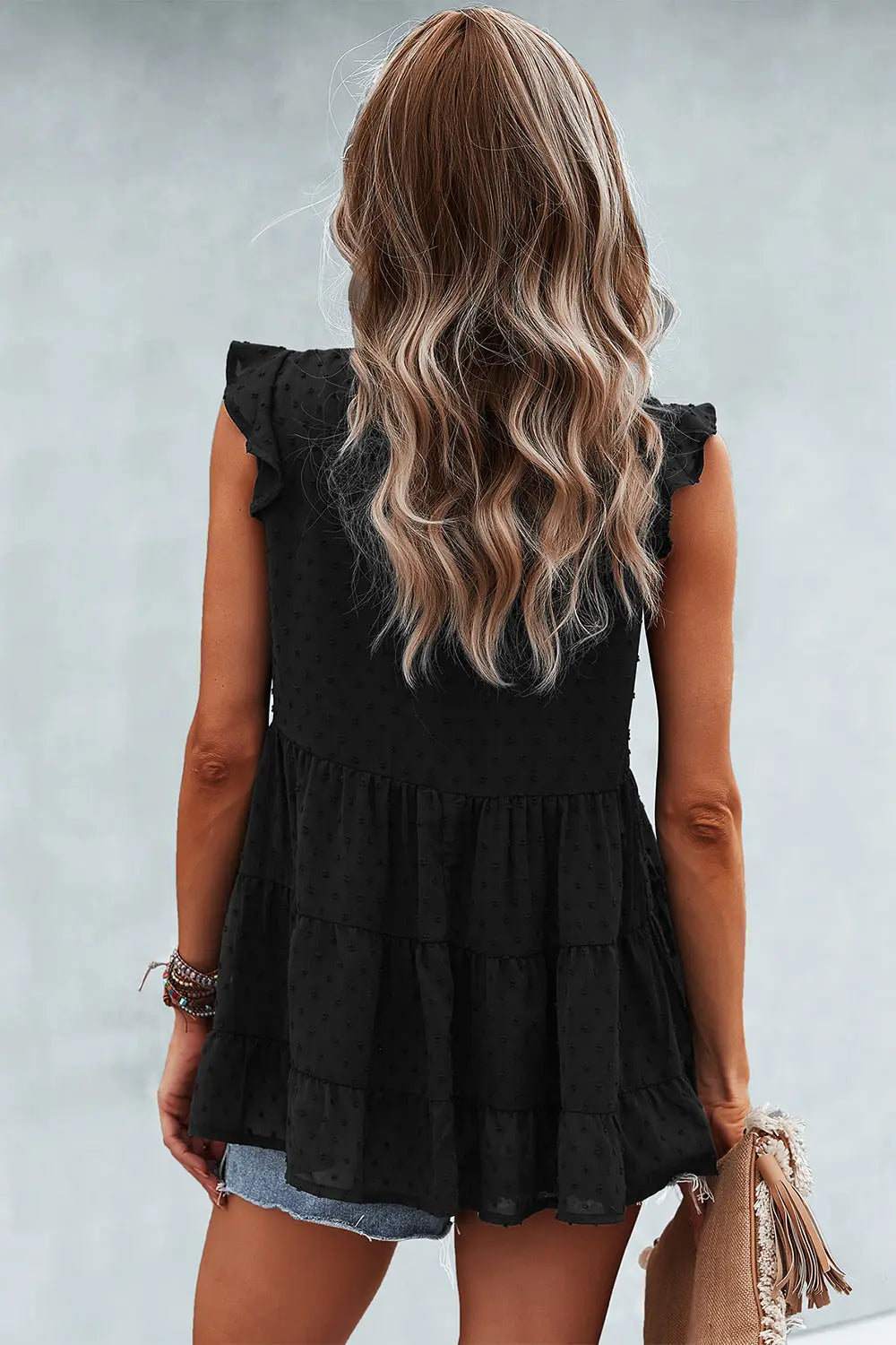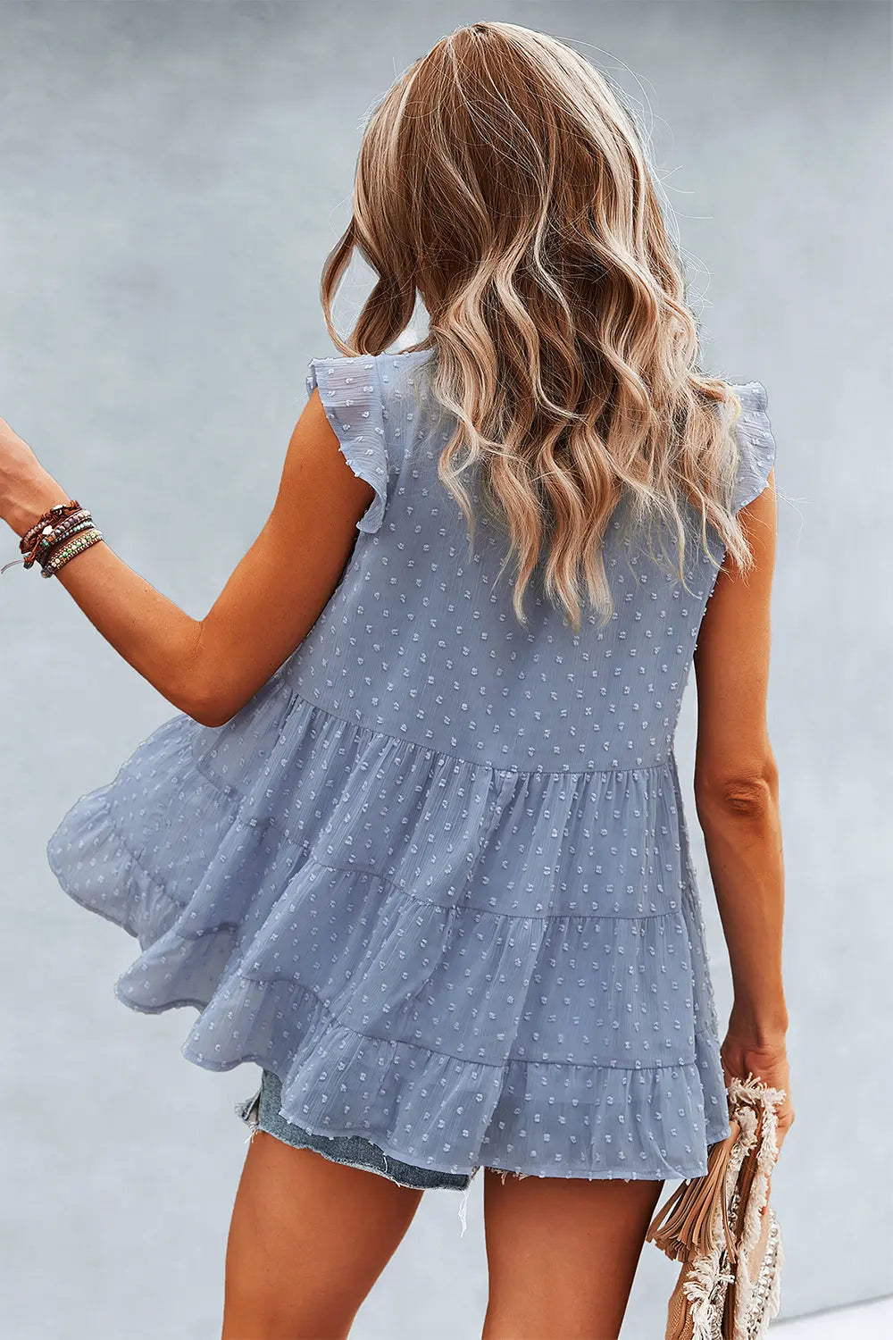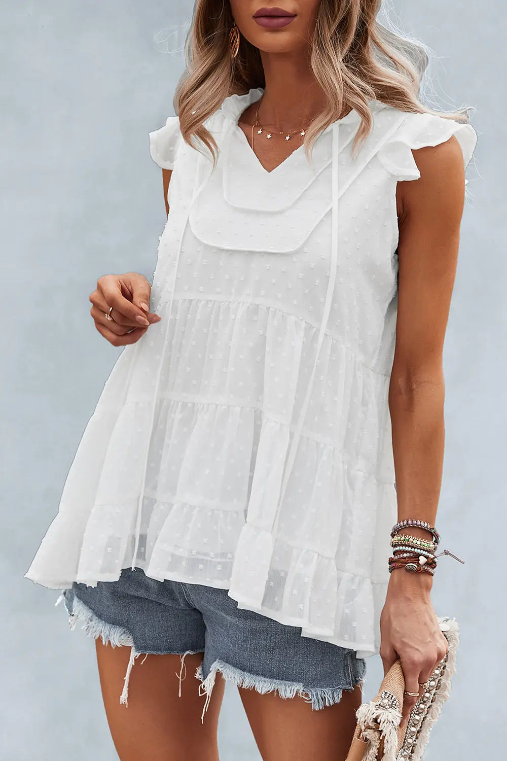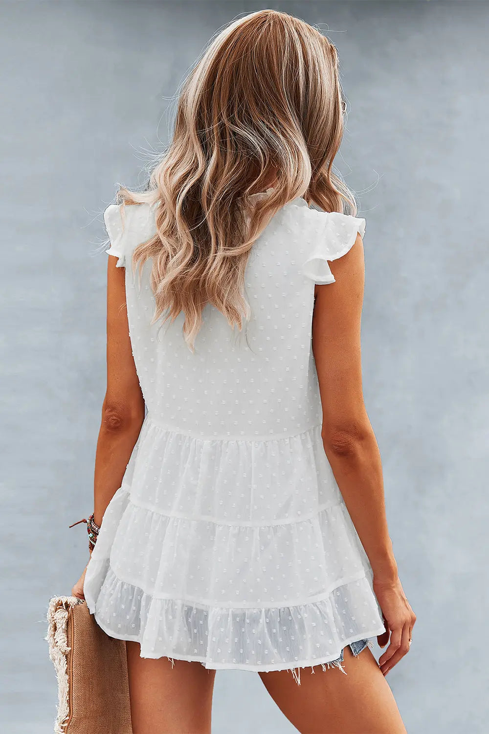 Cap Sleeve Swiss Dot Ruffle Babydoll Shirts quantity