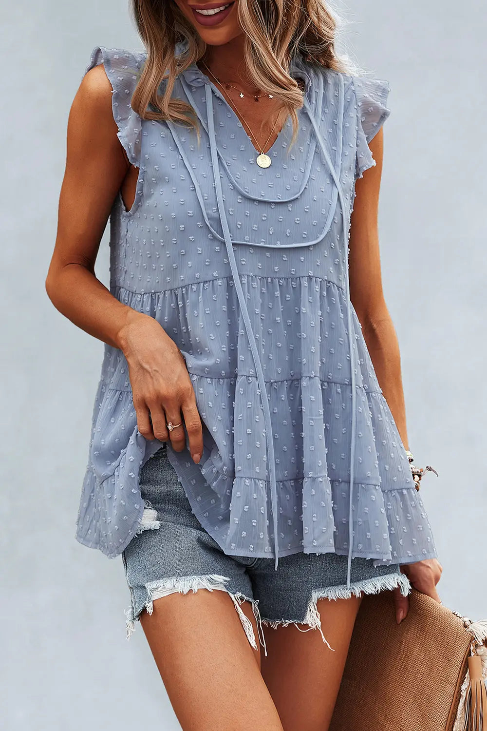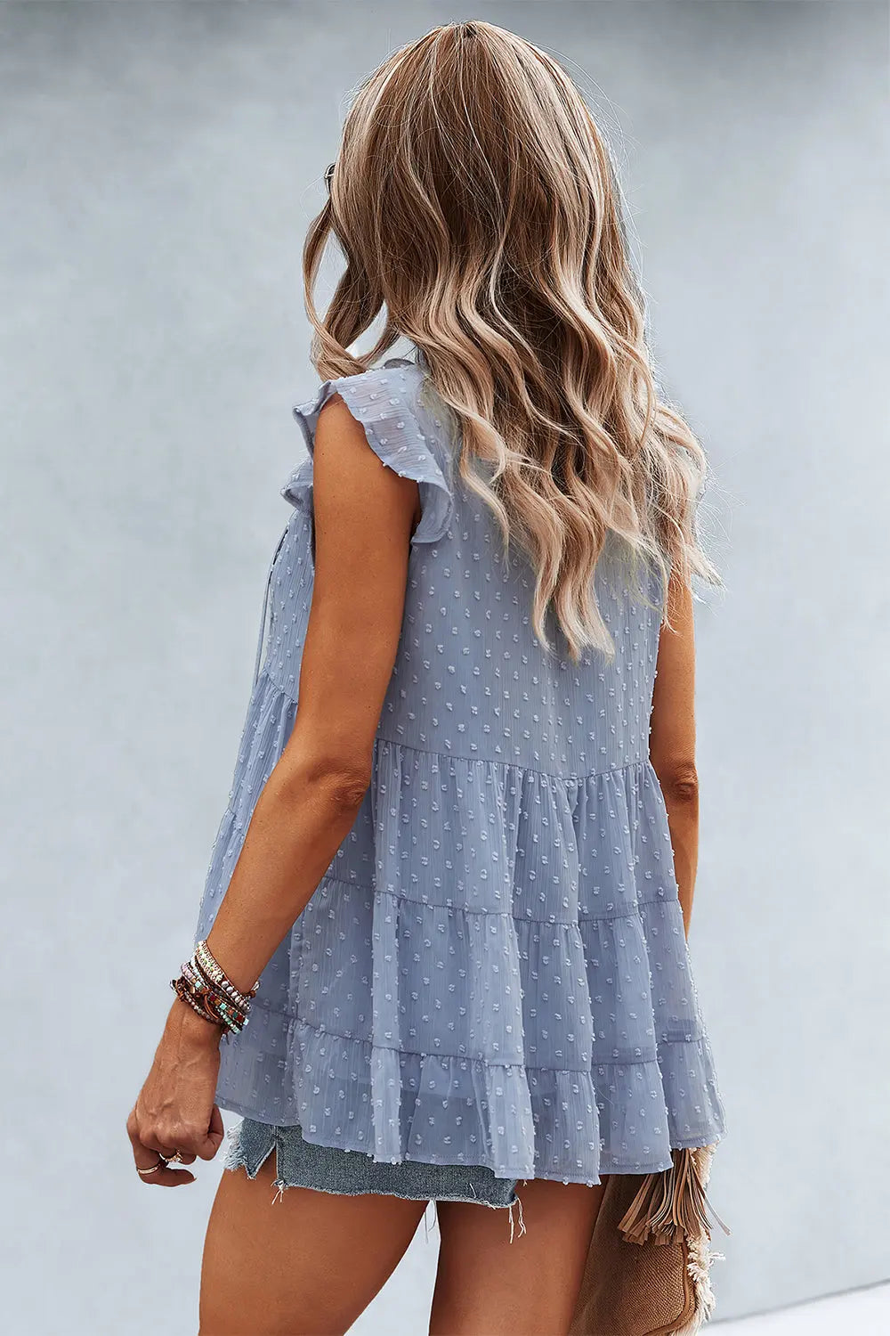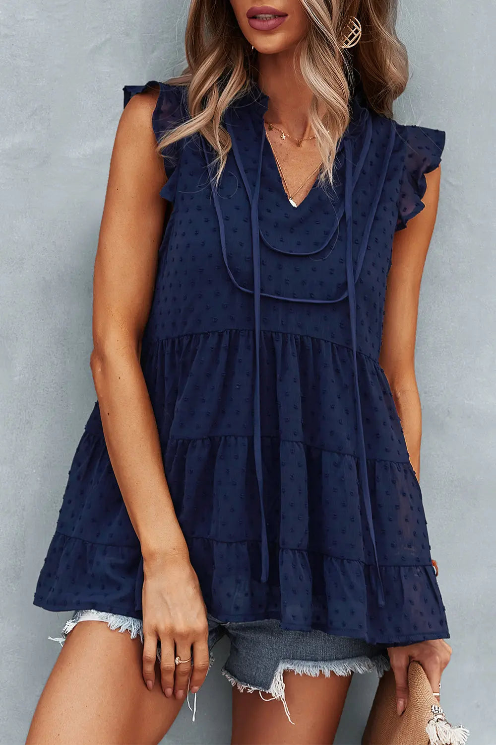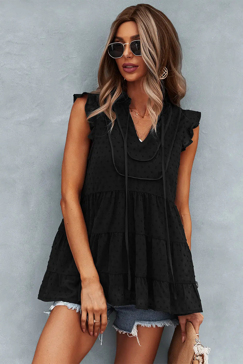 Cap Sleeve Swiss Dot Ruffle Babydoll Shirts quantity