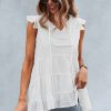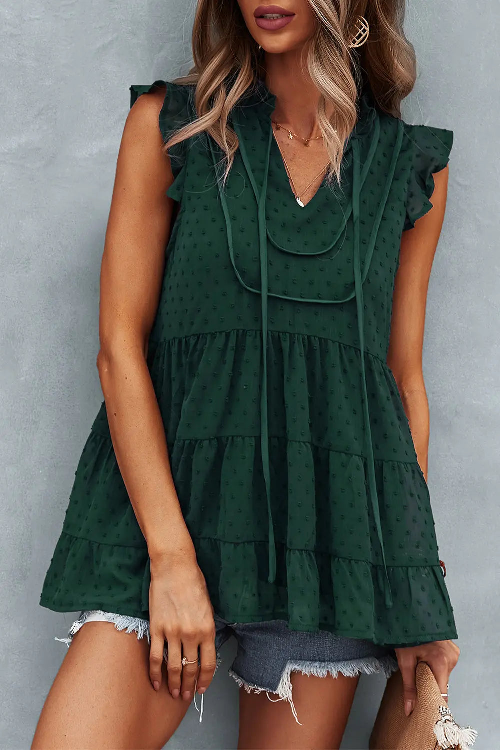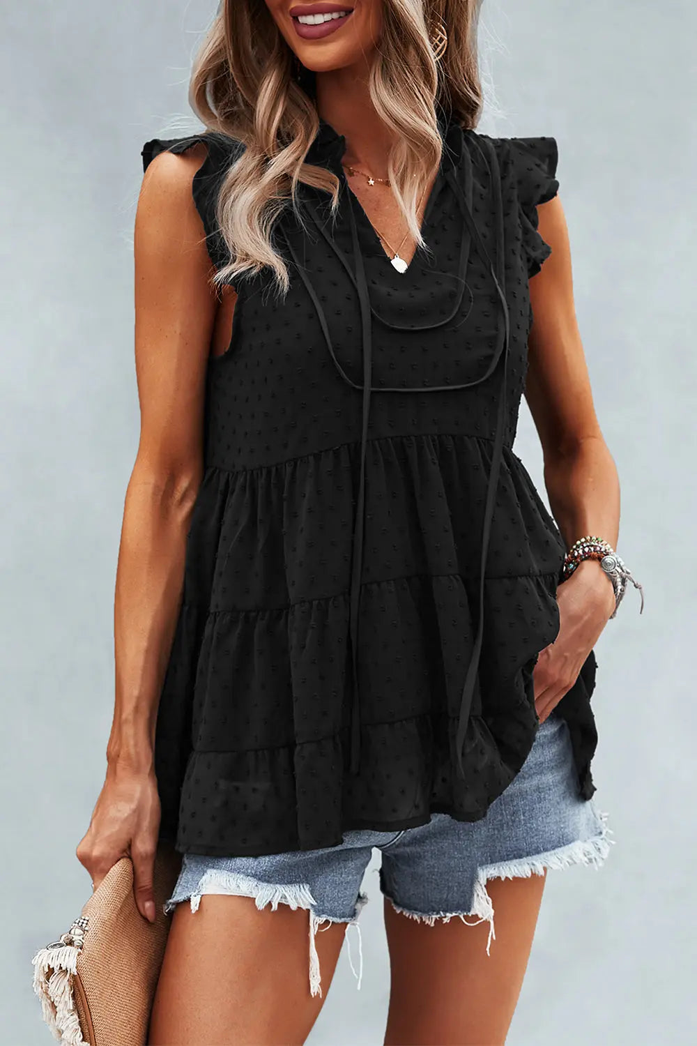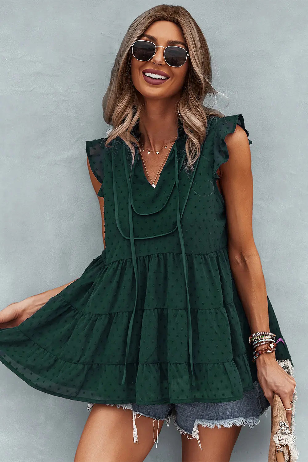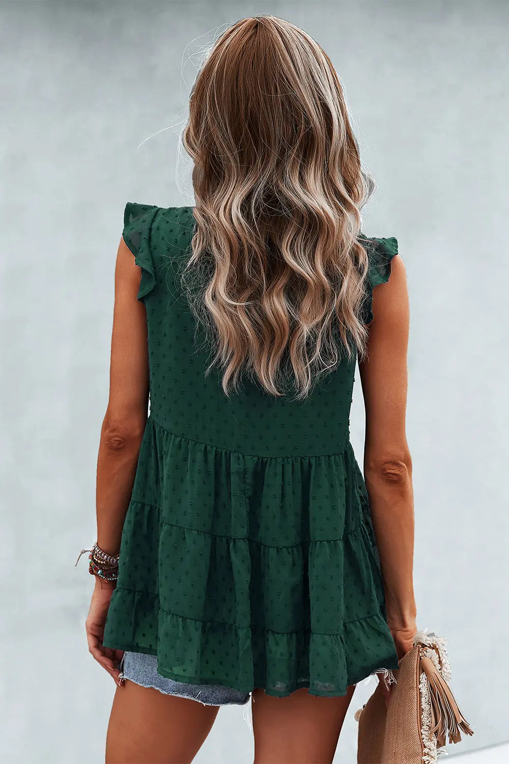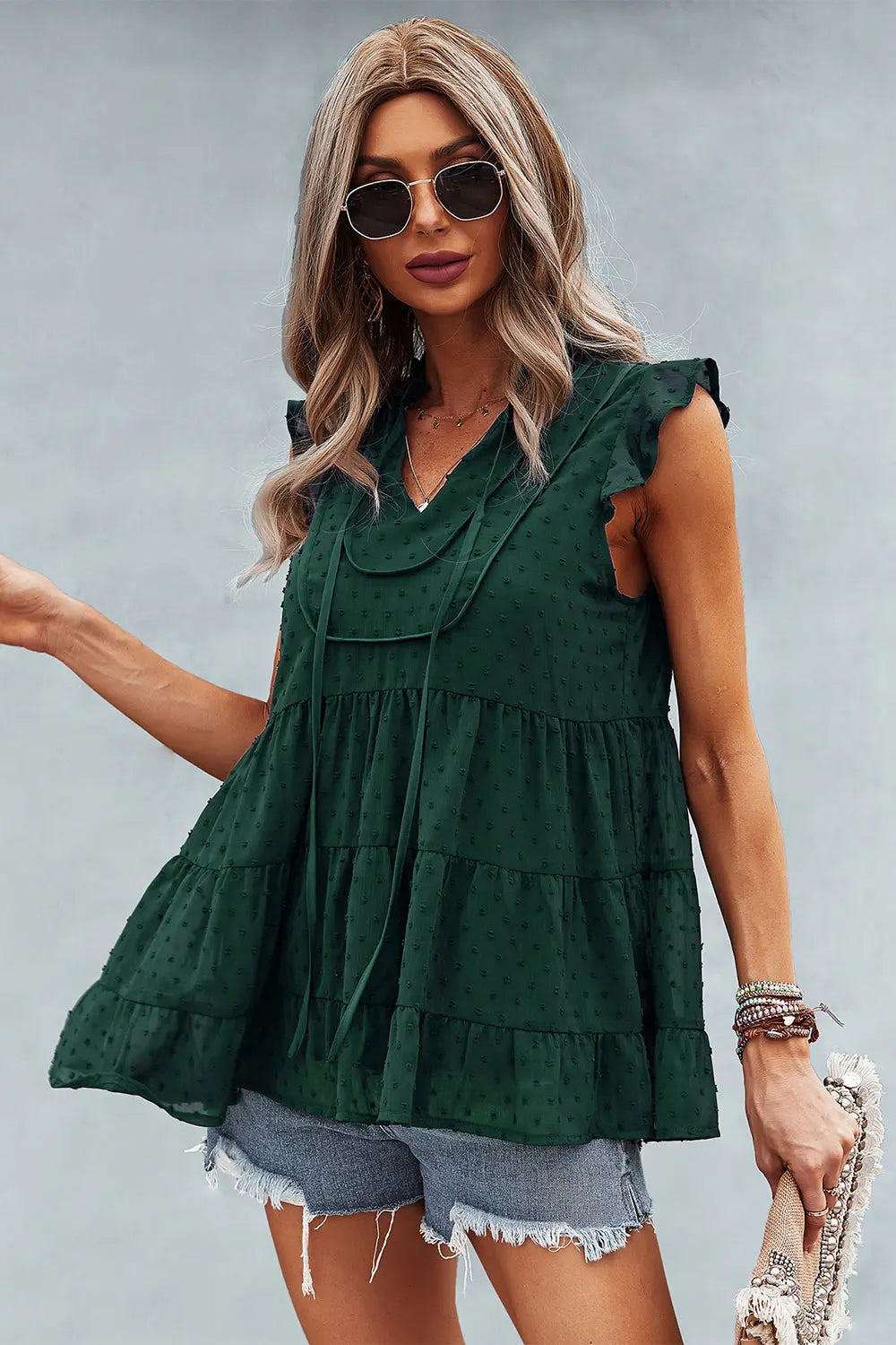Cap Sleeve Swiss Dot Ruffle Babydoll Shirts quantity