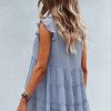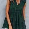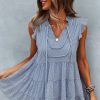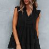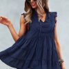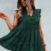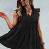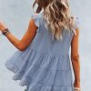 Cap Sleeve Swiss Dot Ruffle Babydoll Shirts