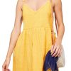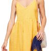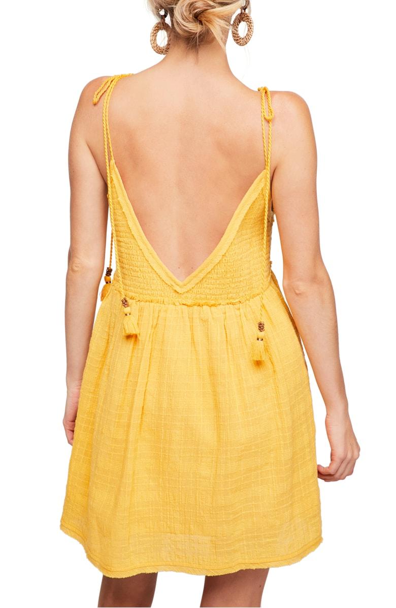 Let the sun wash over you in this boho-chic minidress styled with a plunging V-back, ropy straps with tassel ties and a comfortably smocked bodice.