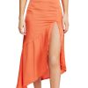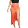 Silky-soft fabric makes you feel like you’re barely wearing anything at all in this asymmetrical skirt detailed with a thigh-high slit.