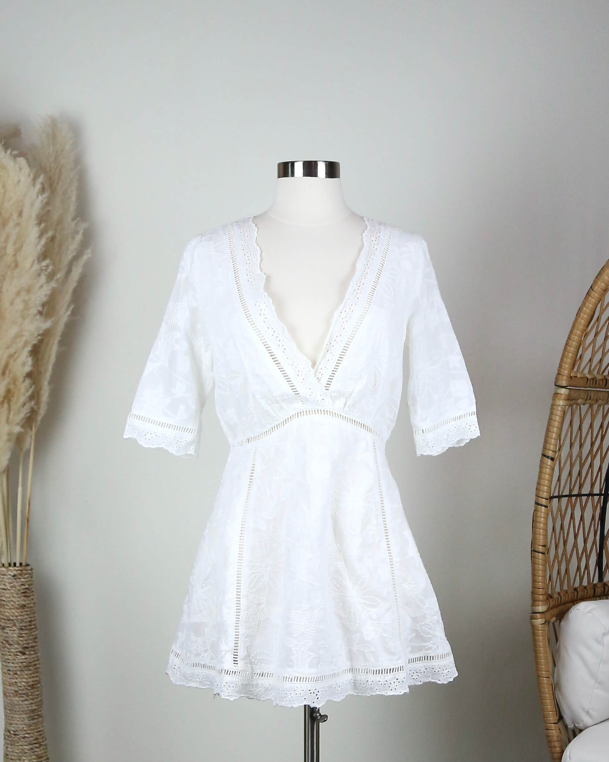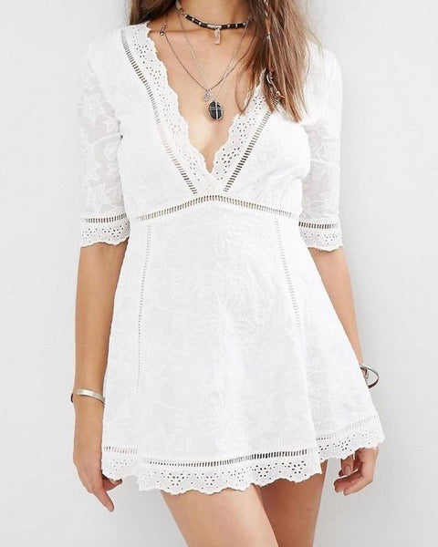 Warmknitsocks Off Duty Plunging Festival Women’s Dress in White
