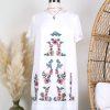 Warmknitsocks Floral Embroidered Shift Dress in Ivory
