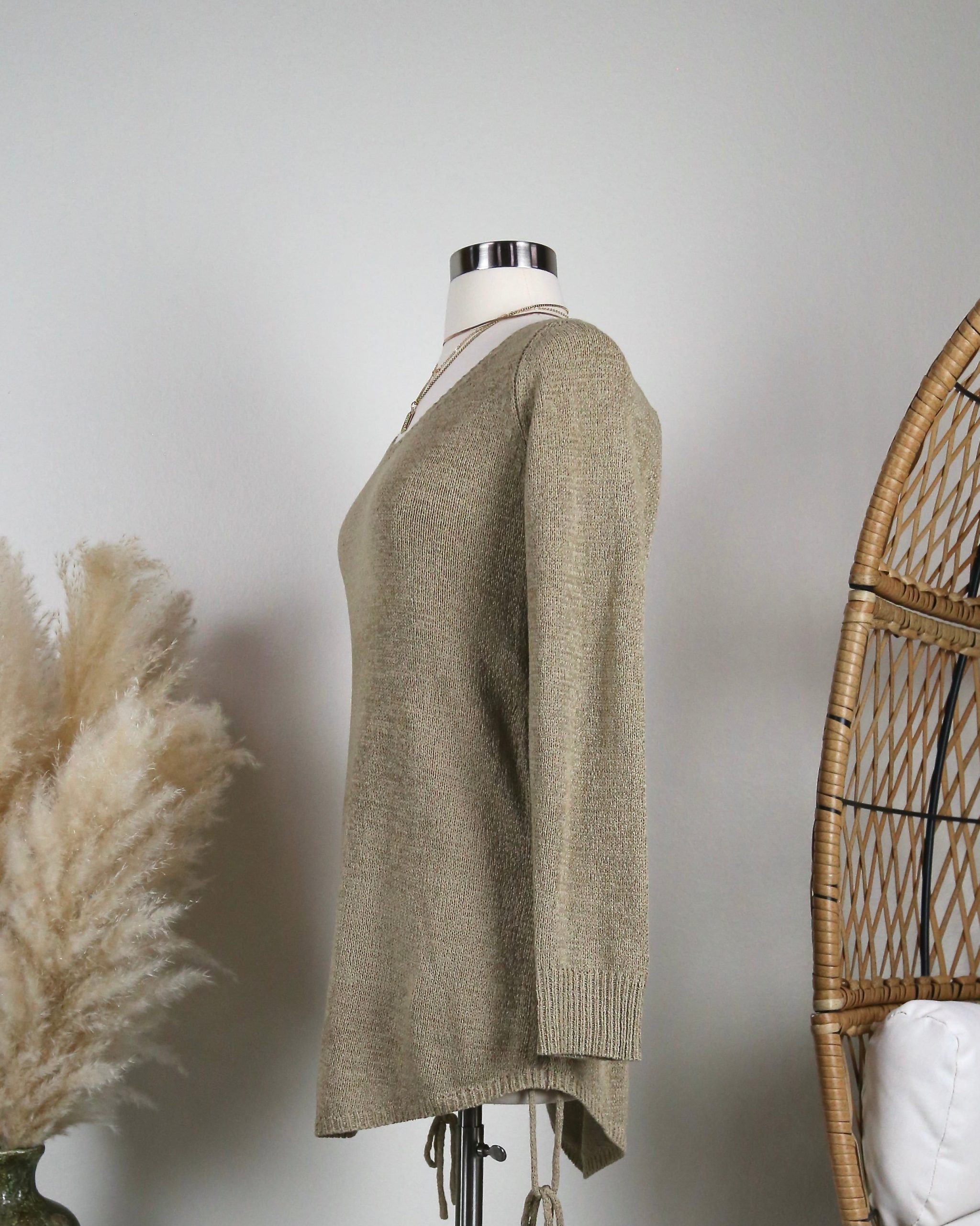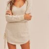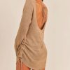 • Open Back Knit Sweater Dress with Side Drawstring