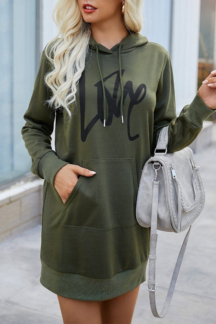 - A MUST-HAVE ITEM FOR LAZY PEOPLE!This long sleeve print tunic sweatshirt dress is fashion and casual with a front print and drawstring design.Hooded design can cover wide shoulders and back,looking thin and age-reducing.