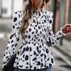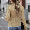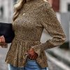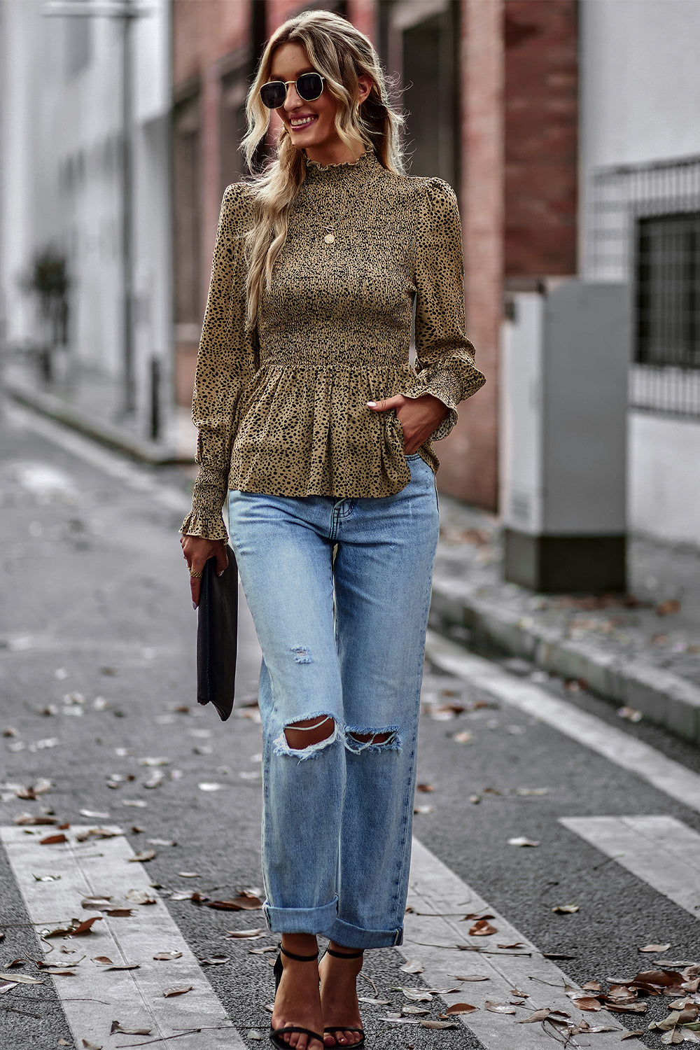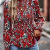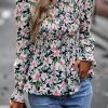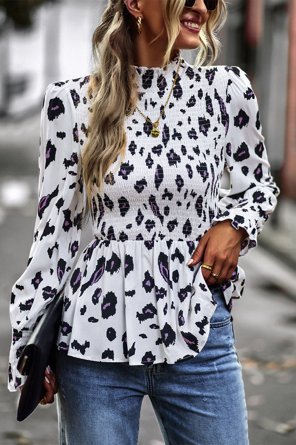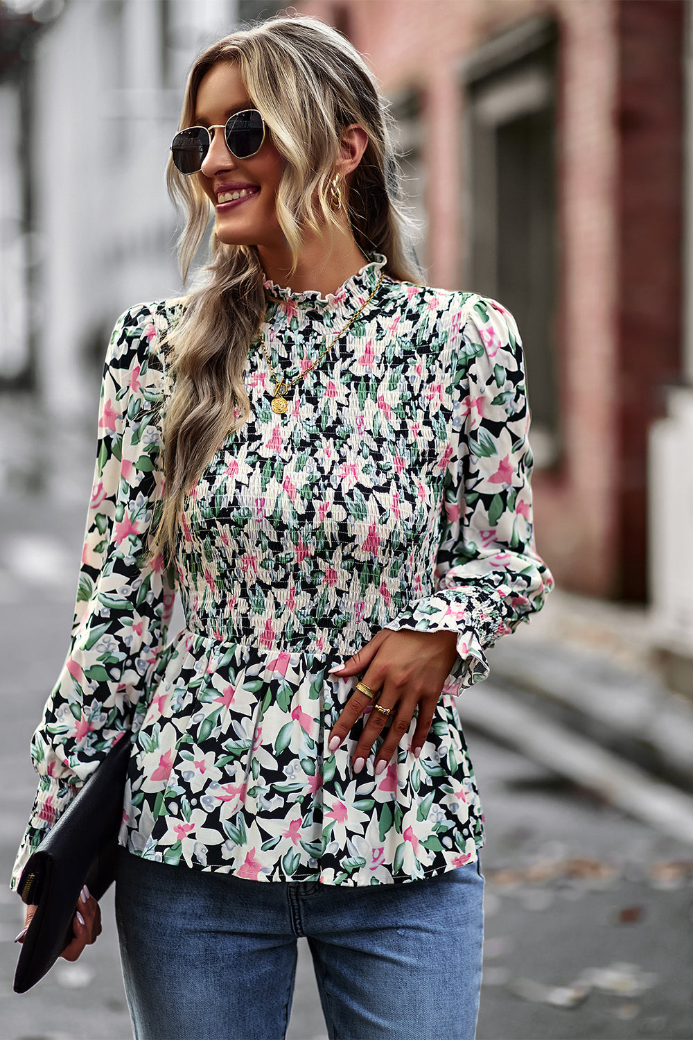 Puff Sleeve Smocked Print Babydoll Tunic Blouse quantity