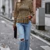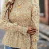 Tie Front Crew Neck Ribbed Pullover Tops Jumper