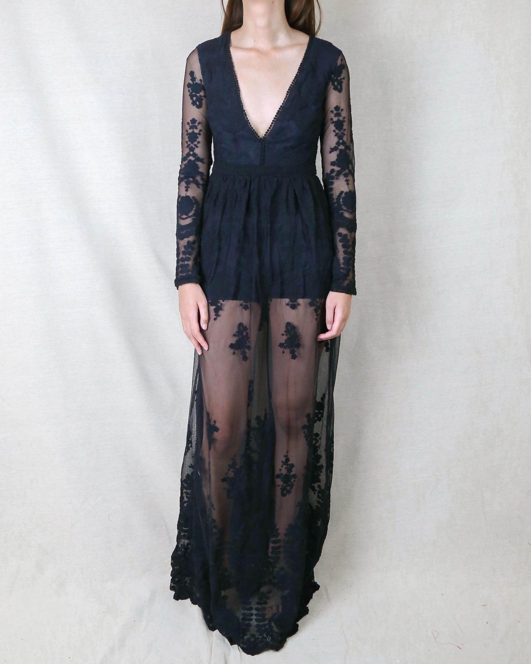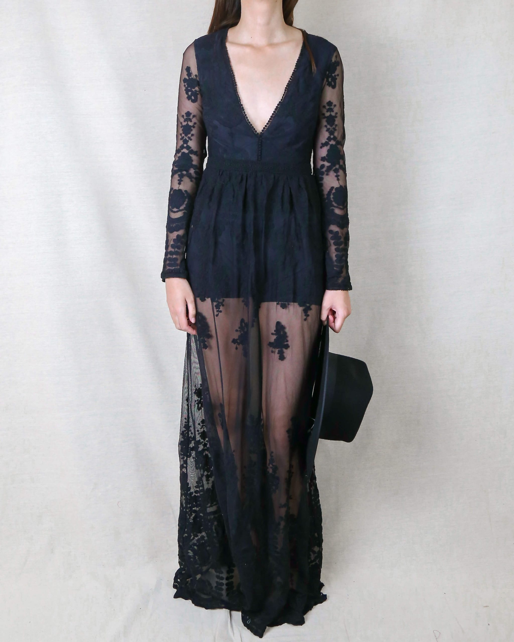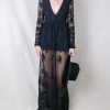 Warmknitsocks Embroidered Maxi Dress in Black